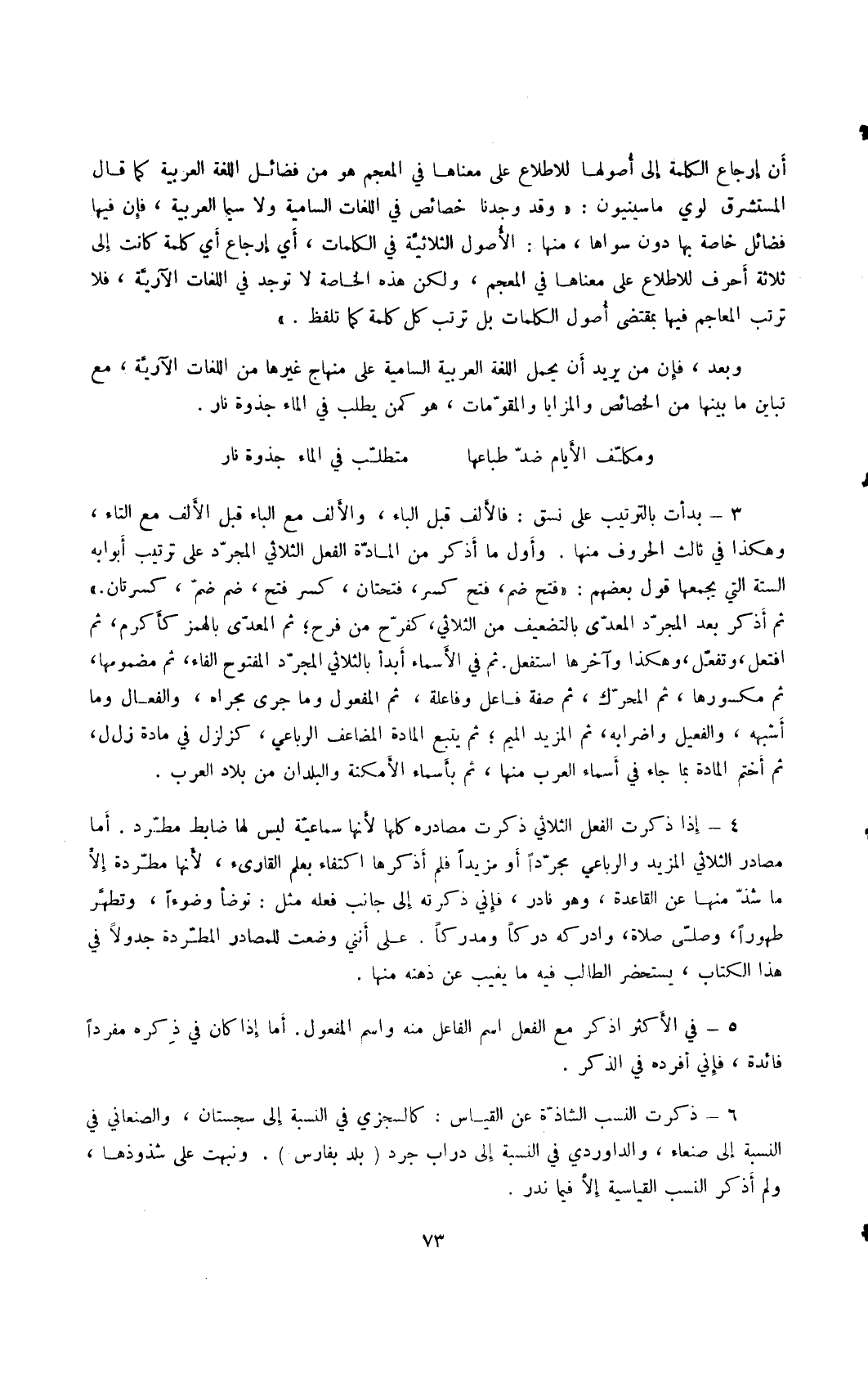 وبعد، فإن من يريد أن يحمل اللغة العربية السامية على منهاج غيرها من اللغات الآرية، مع تباين ما بينها من الخصائص والمزايا والمقومات، هو كمن يطلب في الماء جذوة نار.