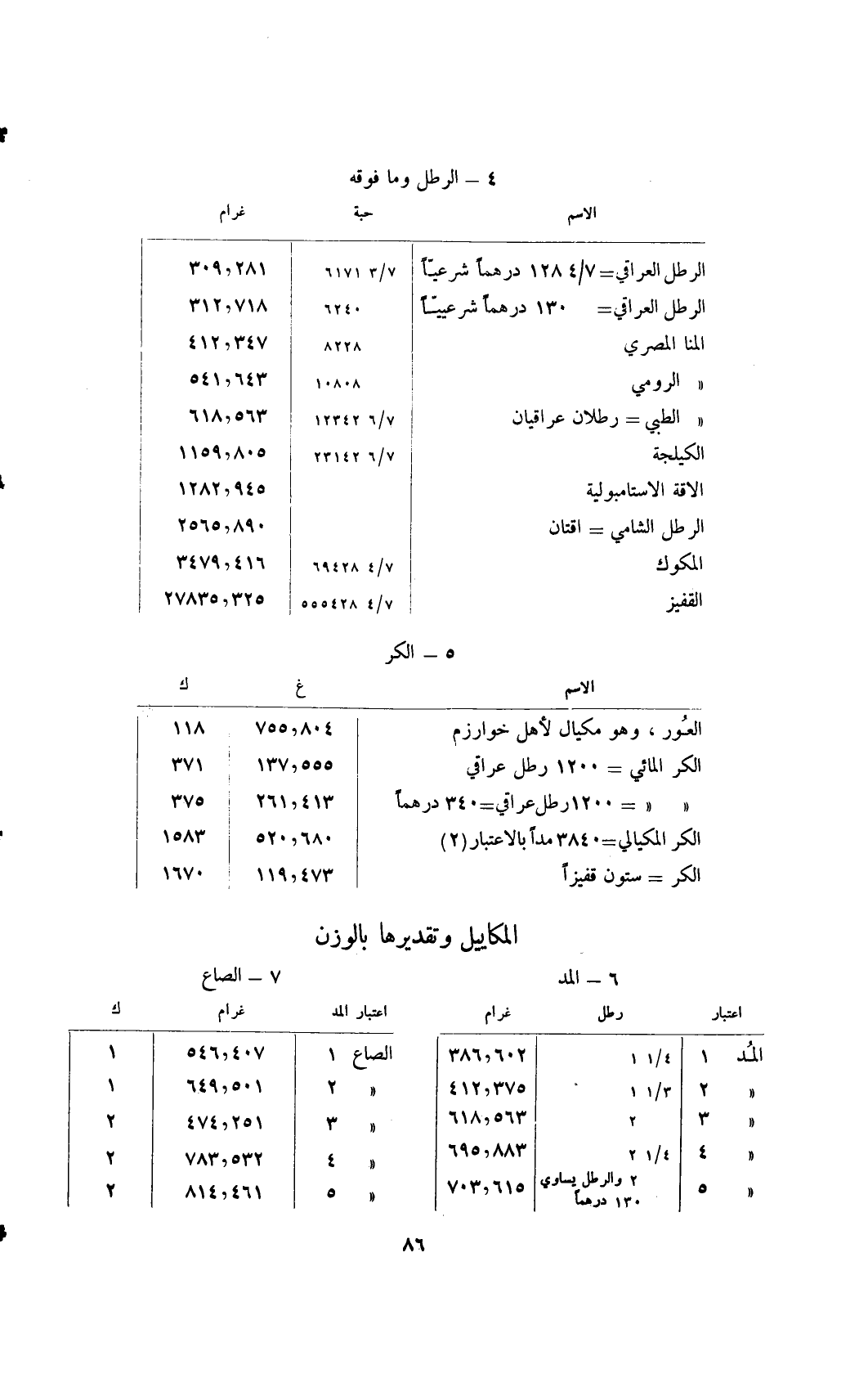 الرطل العراقي= 7/ 4 128 درهمًا شرعيًا ... /3 6171 ... ,281