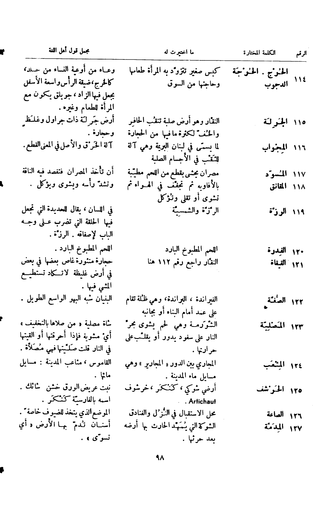 الرقم ... الكلمة المختارة ... ما اختيرت له ... مجمل قول أهل اللغة