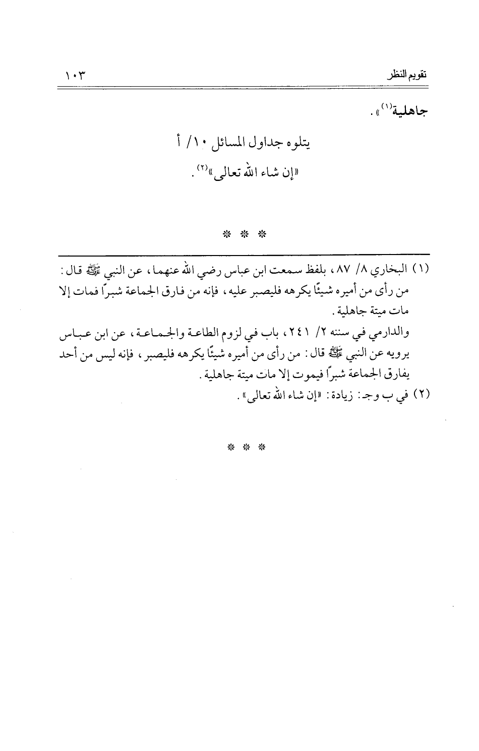 يتلوه جداول الْمسَائِل 10 / أ " إِن شَاءَ الله تَعَالَى ".
