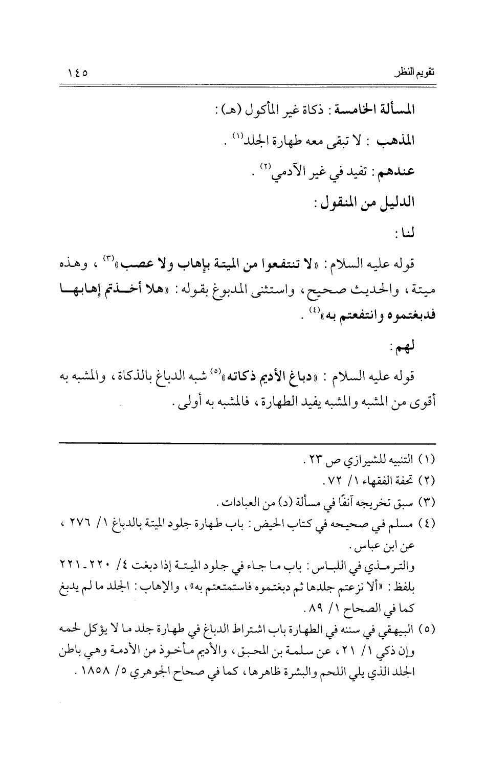 (الْمَسْأَلَة الْخَامِسَة: ذَكَاة غير الْمَأْكُول (هـ))