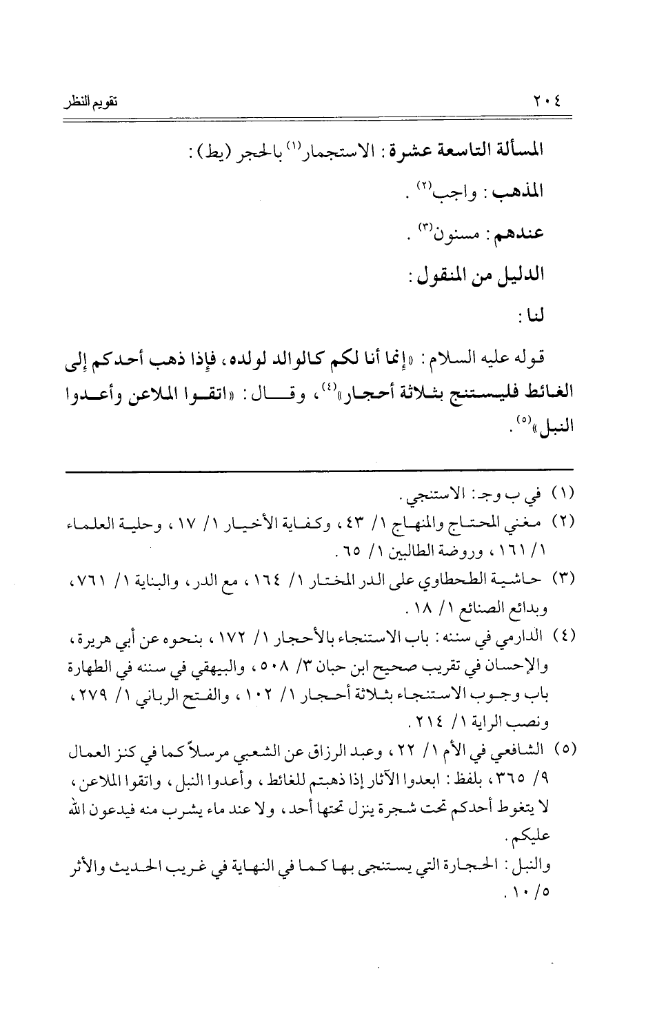(المسالة التَّاسِعَة عشرَة: الِاسْتِجْمَار بِالْحجرِ (يط) :)