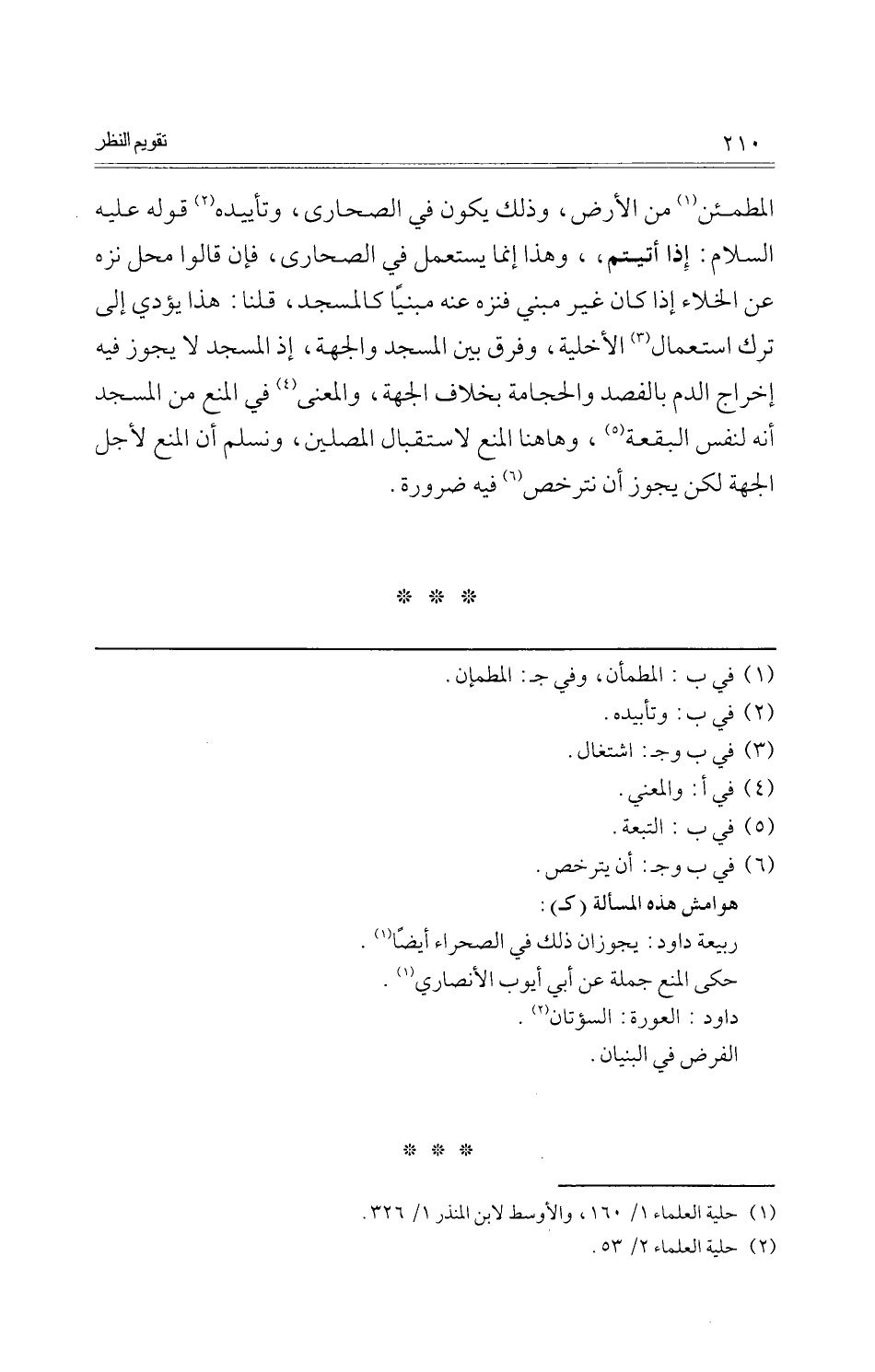 المطمئن من الأَرْض، وَذَلِكَ يكون فِي الصحارى، وتأييده قَوْله عَلَيْهِ السَّلَام: إِذا أتيتم، وَهَذَا إِنَّمَا يسْتَعْمل فِي الصحارى، فَإِن قَالُوا مَحل نزه عَن الْخَلَاء إِذا كَانَ غير مَبْنِيّ فنزه عَنهُ مَبْنِيا كالمسجد، قُلْنَا: هَذَا يُؤَدِّي إِلَى ترك اسْتِعْمَال الأخلية، وَفرق بَين الْمَسْجِد والجهة، إِذْ الْمَسْجِد لَا يجوز فِيهِ إِخْرَاج الدَّم بالفصد والحجامة بِخِلَاف الْجِهَة، وَالْمعْنَى فِي الْمَنْع من الْمَسْجِد أَنه لنَفس الْبقْعَة، وَهَاهُنَا الْمَنْع لاستقبال الْمُصَلِّين، ونسلم أَن الْمَنْع لأجل الْجِهَة لَكِن يجوز أَن نترخص فِيهِ ضَرُورَة.