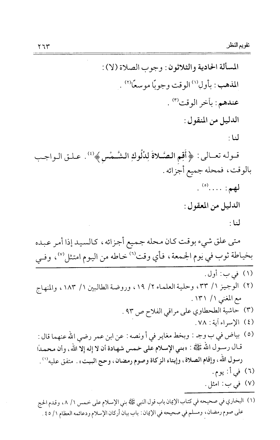 (الْمَسْأَلَة الْحَادِيَة وَالثَّلَاثُونَ)