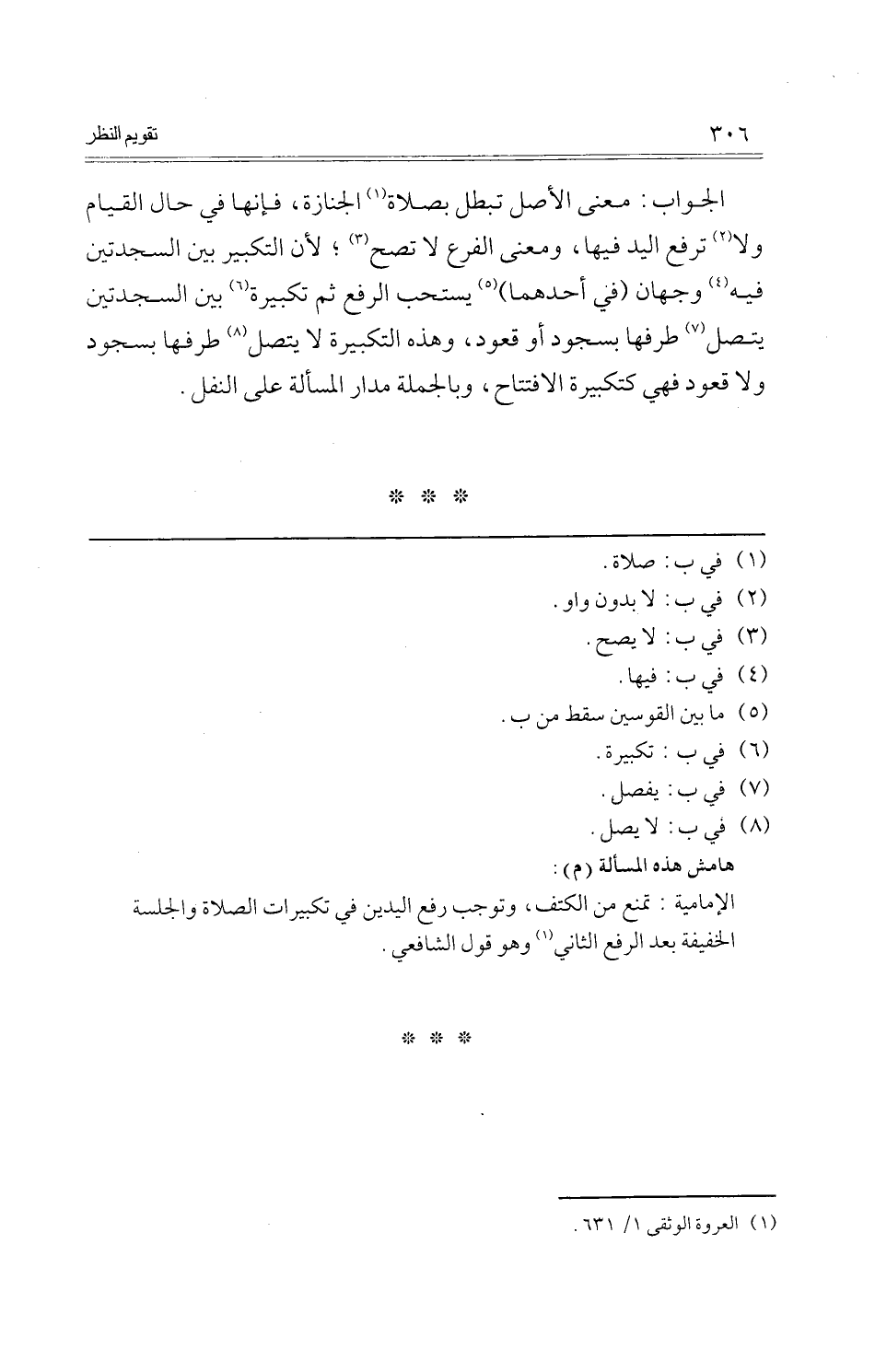 الْجَواب: معنى الأَصْل تبطل بِصَلَاة الْجِنَازَة، فَإِنَّهَا فِي حَال الْقيام وَلَا ترفع الْيَد فِيهَا، وَمعنى الْفَرْع لَا تصح؛ لِأَن التَّكْبِير بَين السَّجْدَتَيْنِ فِيهِ وَجْهَان (فِي أَحدهمَا) يسْتَحبّ الرّفْع ثمَّ تَكْبِيرَة بَين السَّجْدَتَيْنِ يتَّصل طرفها بسجود أَو قعُود، وَهَذِه التَّكْبِيرَة لَا يتَّصل طرفها بسجود وَلَا قعُود فَهِيَ كتكبيرة الِافْتِتَاح، وَبِالْجُمْلَةِ مدَار الْمَسْأَلَة على النَّفْل.