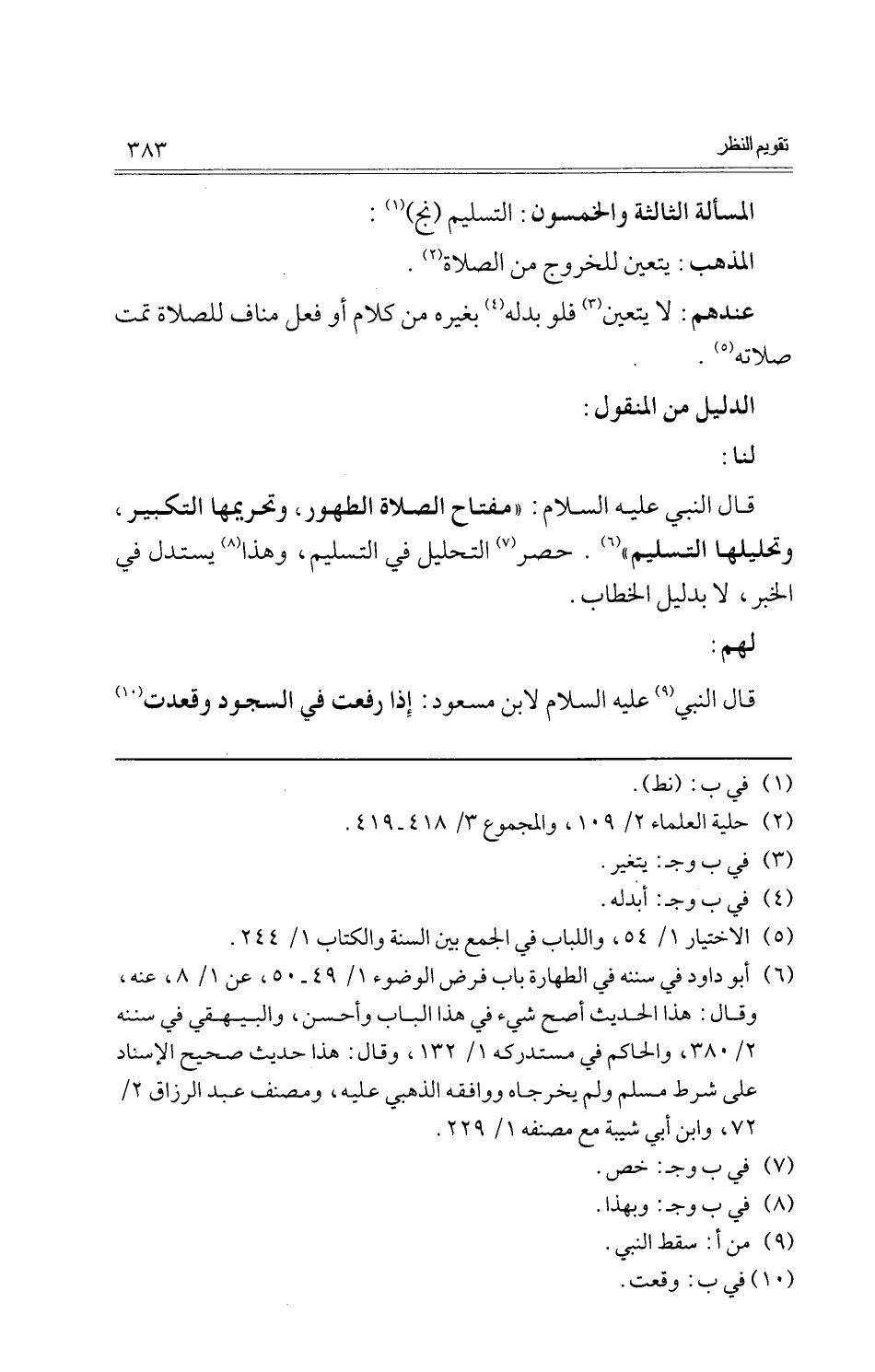 كتاب تقويم النظر في مسائل خلافية ذائعة (اسم الجزء: 1)