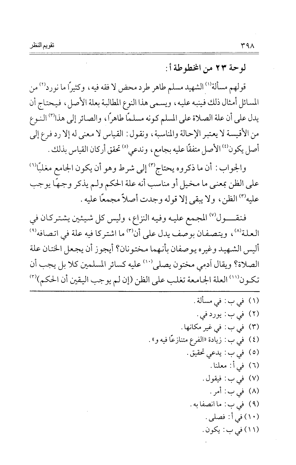 فَنَقُول الْمجمع عَلَيْهِ وَفِيه النزاع، وَلَيْسَ كل شَيْئَيْنِ يَشْتَرِكَانِ فِي الْعلَّة، ويتصفان بِوَصْف يدل على أَن مَا اشْتَركَا فِيهِ عِلّة فِي اتصافه أَلَيْسَ الشَّهِيد وَغَيره يوصفان بِأَنَّهُمَا مختونان؟ أَيجوزُ أَن يَجْعَل الْخِتَان عِلّة الصَّلَاة؟ وَيُقَال آدَمِيّ مختون يصلى عَلَيْهِ كَسَائِر الْمُسلمين كلا بل يجب أَن تكون الْعلَّة الجامعة تغلب على الظَّن (إِن لم يُوجب الْيَقِين أَن الحكم)