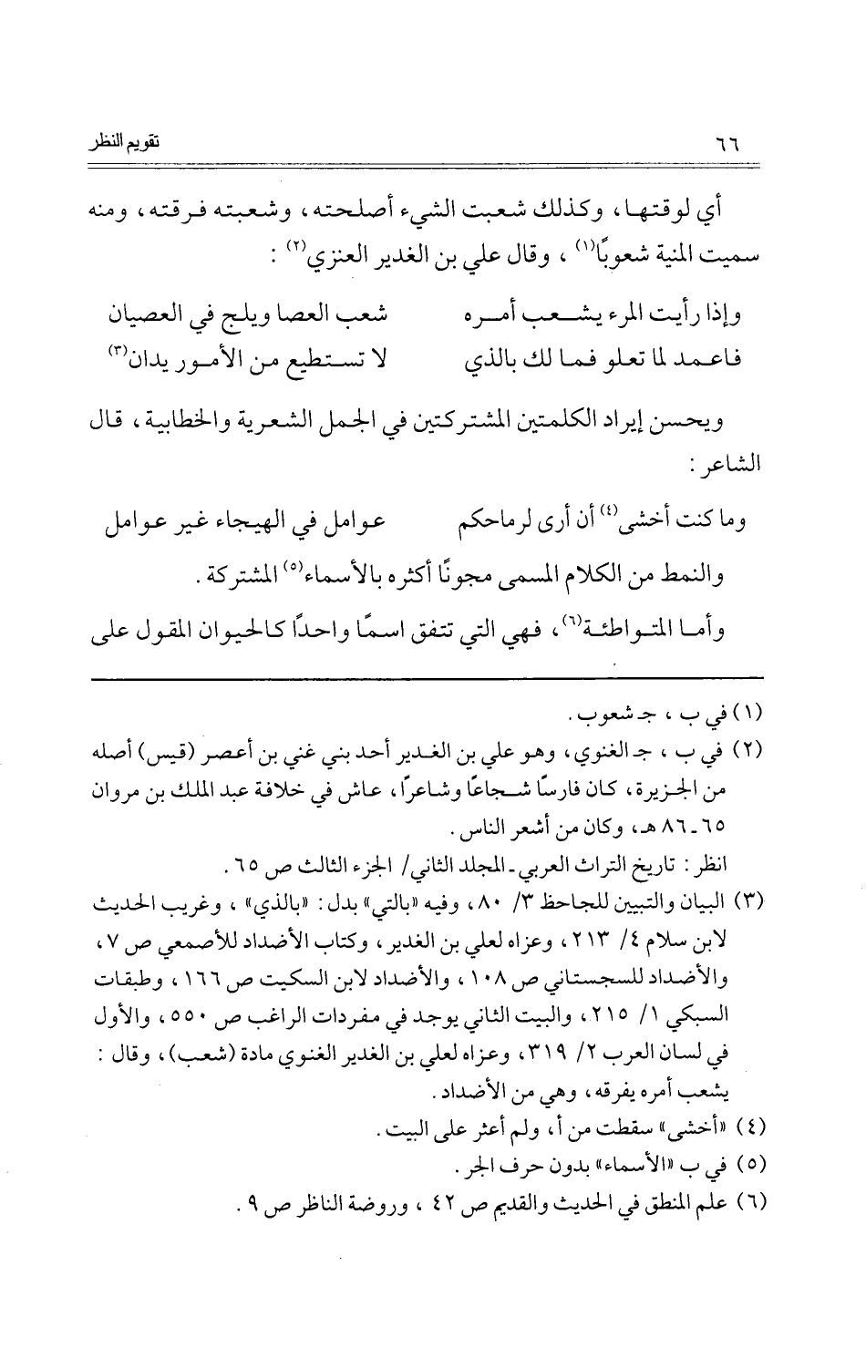 (وَإِذا رَأَيْت الْمَرْء يشعب أمره ... شعب الْعَصَا ويلج فِي الْعِصْيَان)