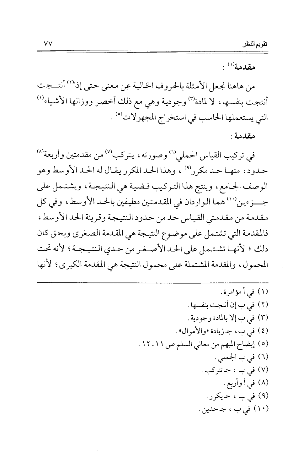 من هَاهُنَا نجْعَل الْأَمْثِلَة بالحروف الخالية عَن معنى حَتَّى إِذا أنتجت أنتجت بِنَفسِهَا، لَا لمادة وجودية وَهِي مَعَ ذَلِك أخصر ووزانها الْأَشْيَاء الَّتِي يستعملها الحاسب فِي اسْتِخْرَاج المجهولات.