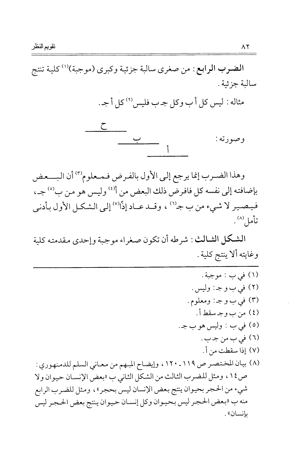 وَهَذَا الضَّرْب إِنَّمَا يرجع إِلَى الأول بِالْفَرْضِ فمعلوم أَن الْبَعْض بإضافته إِلَى نَفسه كل فافرض ذَلِك الْبَعْض من أوليس هُوَ من ب ج، فَيصير لَا شَيْء من ب ج، وَقد عَاد إِذا إِلَى الشكل الأول بِأَدْنَى تَأمل.