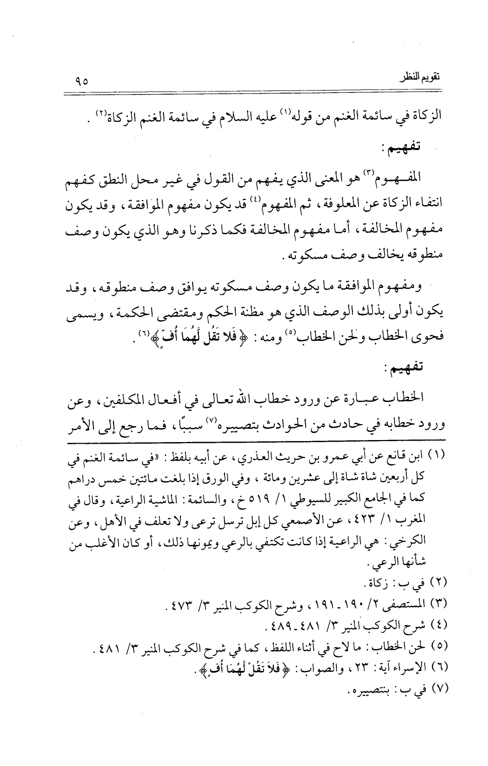 الْمَفْهُوم هُوَ الْمَعْنى الَّذِي يفهم من القَوْل فِي غير مَحل النُّطْق كفهم انْتِفَاء الزَّكَاة عَن المعلوفة، ثمَّ الْمَفْهُوم قد يكون مَفْهُوم الْمُوَافقَة، وَقد يكون مَفْهُوم الْمُخَالفَة، أما مَفْهُوم الْمُخَالفَة فَكَمَا ذكرنَا وَهُوَ الَّذِي يكون وصف منطوقه يُخَالف وصف مسكوته.