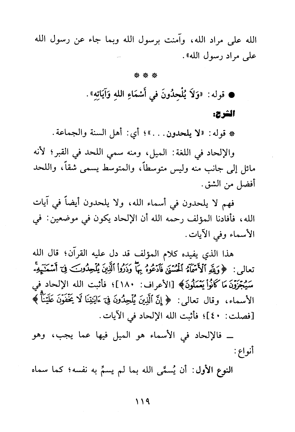 هذا الذي يفيده كلام المؤلف قد دل عليه القرآن قال الله تعالى: {وَلِلَّهِ الأَسْمَاءُ الْحُسْنَى فَادْعُوهُ بِهَا وَذَرُوا الَّذِينَ يُلْحِدُونَ فِي أَسْمَائِهِ سَيُجْزَوْنَ مَا كَانُوا يَعْمَلُونَ} [الأعراف: 180]، فأثبت الله الإلحاد في الأسماء، وقال تعالى: {إِنَّ الَّذِينَ يُلْحِدُونَ فِي آيَاتِنَا لا يَخْفَوْنَ عَلَيْنَا} [فصلت: 40]، فأثبت الله الإلحاد في الآيات.