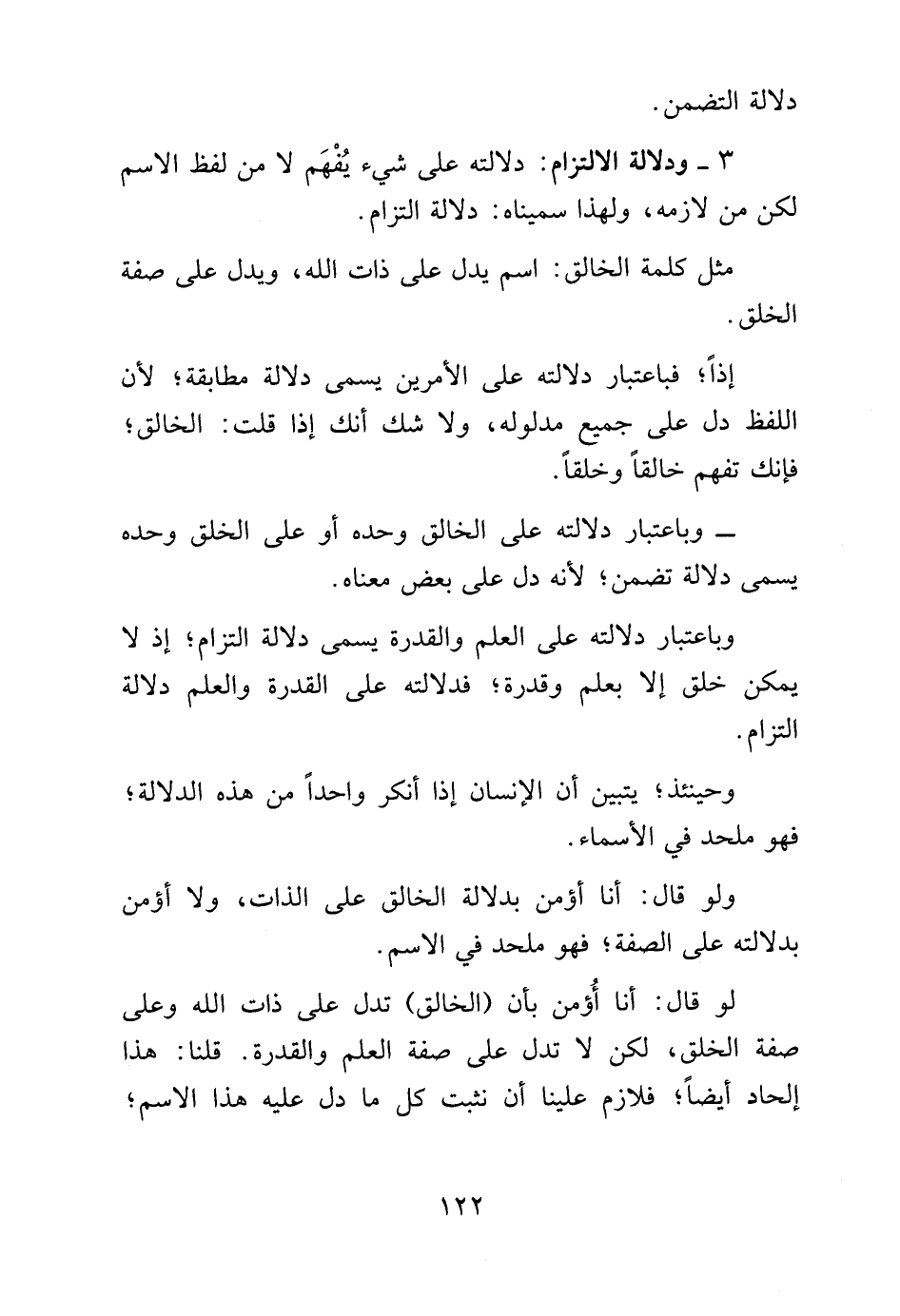 وباعتبار دلالته على العلم والقدرة يسمى دلالة التزام، إذ لا يمكن خلق إلا بعلم وقدرة، فدلالته على القدرة والعلم دلالة التزام.
