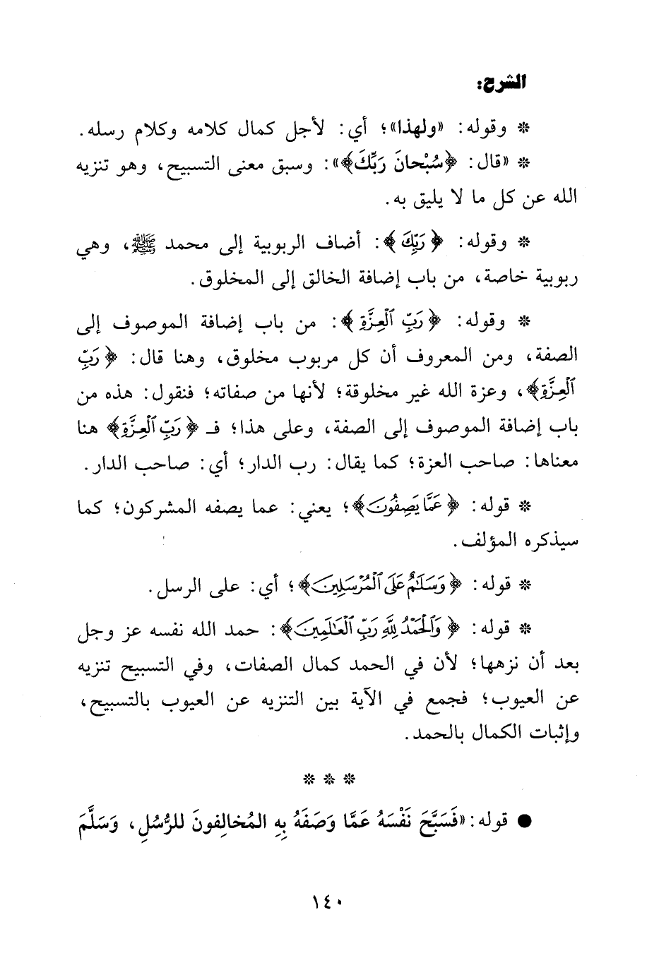 وقوله: {رَبِّ الْعِزَّةِ} من باب إضافة الموصوف إلى الصفة، ومن المعروف أن كل مربوب مخلوق وهنا قال: {رَبِّ الْعِزَّةِ}، وعزه الله غير مخلوقة، لأنها من صفاته، فنقول: هذه من باب إضافة الموصوف إلى الصفة وعلى هذا، فـ {رَبِّ الْعِزَّةِ} هنا معناها: صاحب العزة، كما يقال: رب الدار، أي: صاحب الدار.