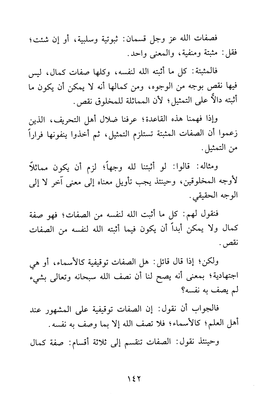 وحينئذ نقول: الصفات تنقسم إلى ثلاثة أقسام: صفة كمال