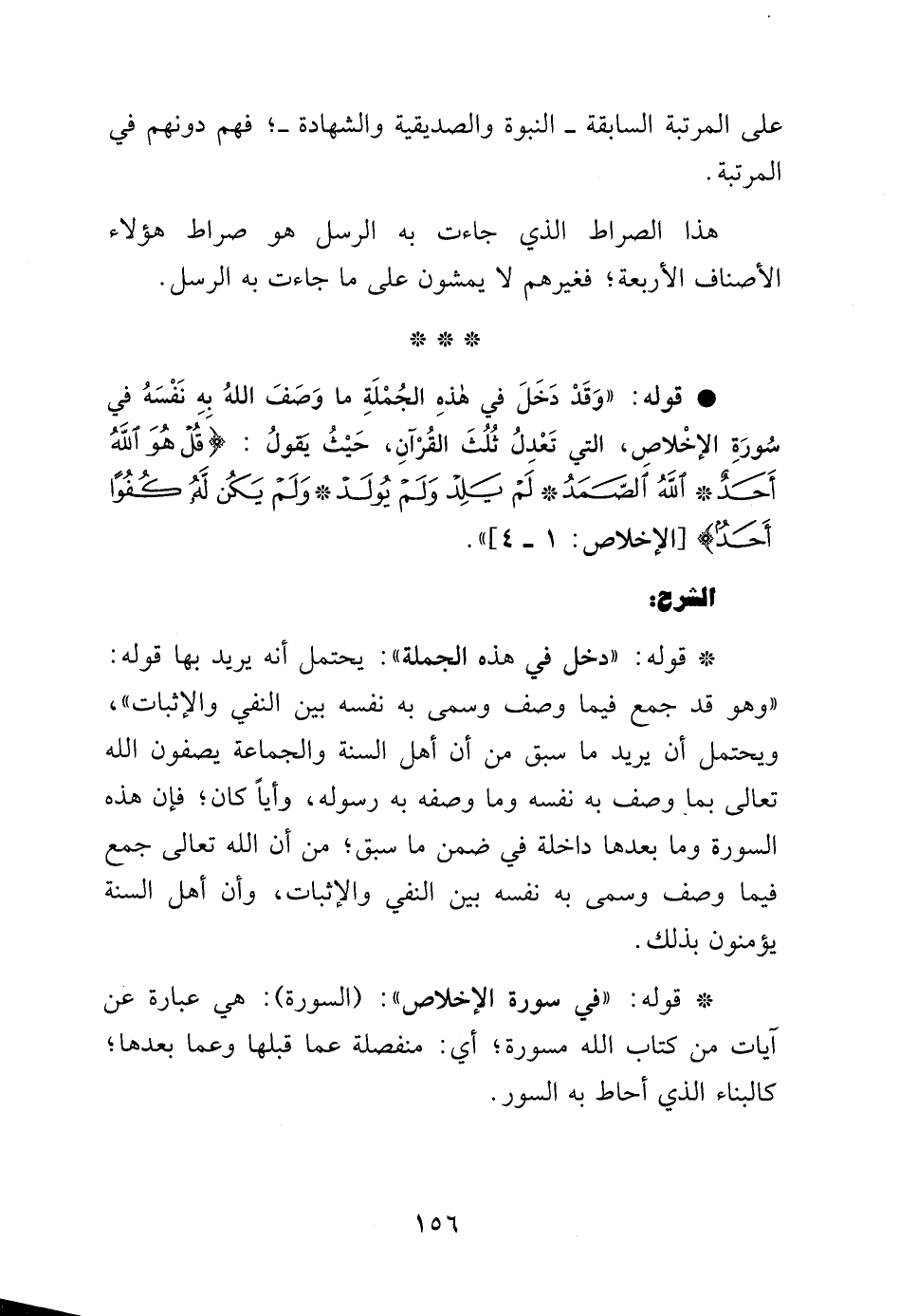 قوله: "وقد دخل في هذه الجملة ما وصف الله به نفسه في سورة الإخلاص التي تعدل ثلث القرآن, حيث يقول: {قُلْ هُوَ اللَّهُ أَحَدٌ اللَّهُ الصَّمَدُ لَمْ يَلِدْ وَلَمْ يُولَدْ وَلَمْ يَكُنْ لَهُ كُفُواً أَحَدٌ} [الإخلاص: 1 - 4] ".