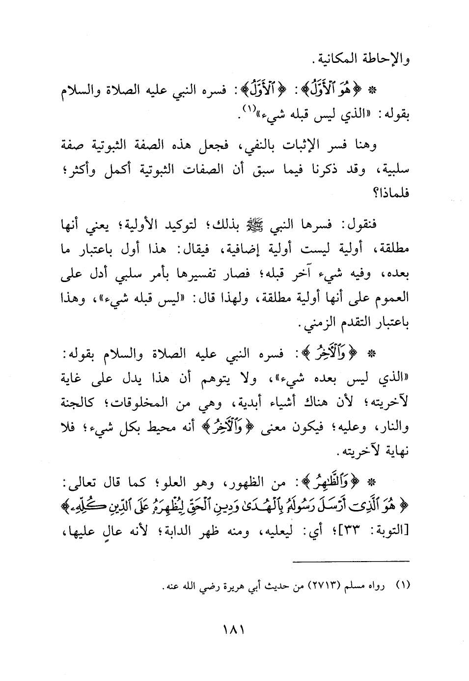 {هُوَ الأَوَّلُ}: {الأَوَّلُ}: فسره النبي عليه الصلاة والسلام بقوله: "الذي ليس قبله شيء" (¬1).