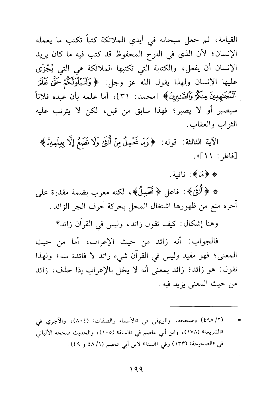 القيامة ثم جعل سبحانه في أيدي الملائكة كتباً تكتب ما يعمله الإنسان، لأن الذي في اللوح المحفوظ قد كتب فيه ما كان يريد الإنسان أن يفعل، والكتاب التي تكتبها الملائكة هي التي يجزى عليها الإنسان ولهذا يقول الله عز وجل: {وَلَنَبْلُوَنَّكُمْ حَتَّى نَعْلَمَ الْمُجَاهِدِينَ مِنْكُمْ وَالصَّابِرِينَ} [محمد: 31]، أما علمه بأن عبده فلاناً سيصبر أو لا يصبر، فهذا سابق من قبل، لكن لا يترتب عليه الثواب والعقاب.