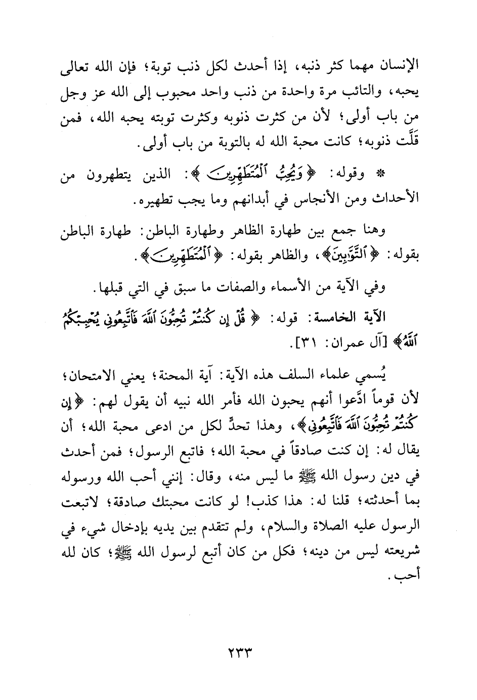 الآية الخامسة: قوله: {قُلْ إِنْ كُنْتُمْ تُحِبُّونَ اللَّهَ فَاتَّبِعُونِي يُحْبِبْكُمُ اللَّهُ} [آل عمران: 31].
