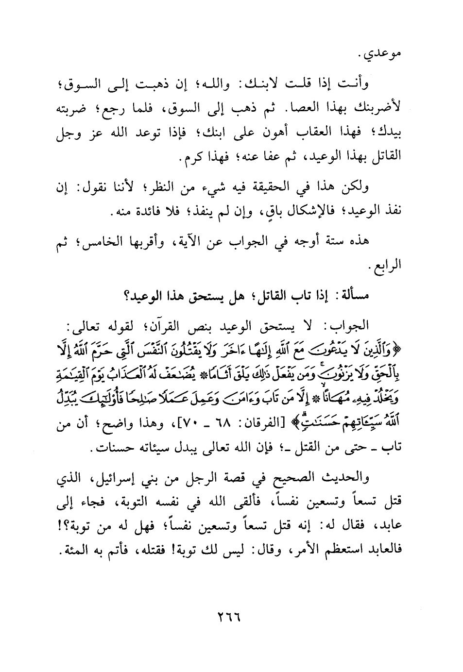 مسألة: إذا تاب القاتل، هل يستحق الوعيد؟
