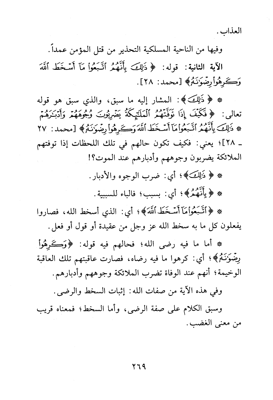 الآية الثانية: قوله: {ذَلِكَ بِأَنَّهُمُ اتَّبَعُوا مَا أَسْخَطَ اللَّهَ وَكَرِهُوا رِضْوَانَهُ} [محمد: 28].