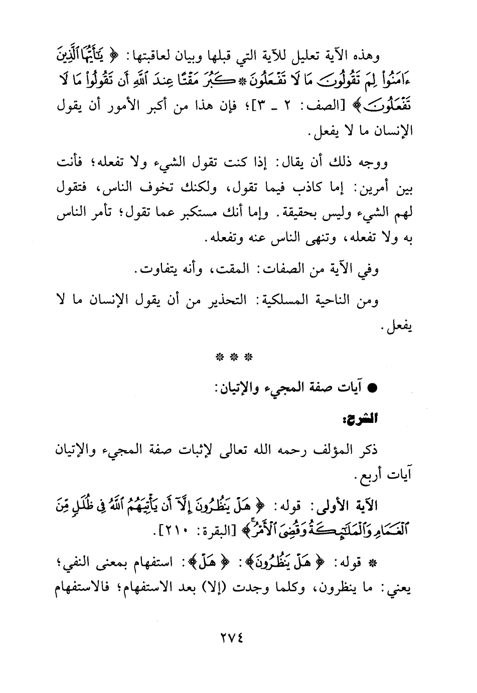 ذكر المؤلف رحمه الله تعالى لإثبات صفة المجيء والإتيان آيات أربع.