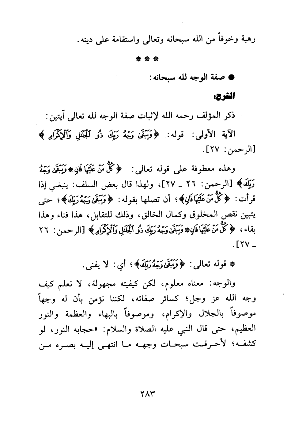 ذكر المؤلف رحمه الله لإثبات صفة الوجه لله تعالى آيتين: