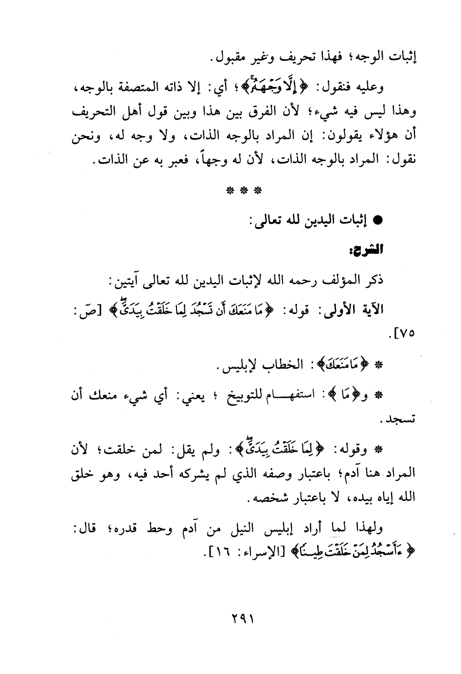 الآية الأولى: قوله: {مَا مَنَعَكَ أَنْ تَسْجُدَ لِمَا خَلَقْتُ بِيَدَيَّ} [ص: 75].