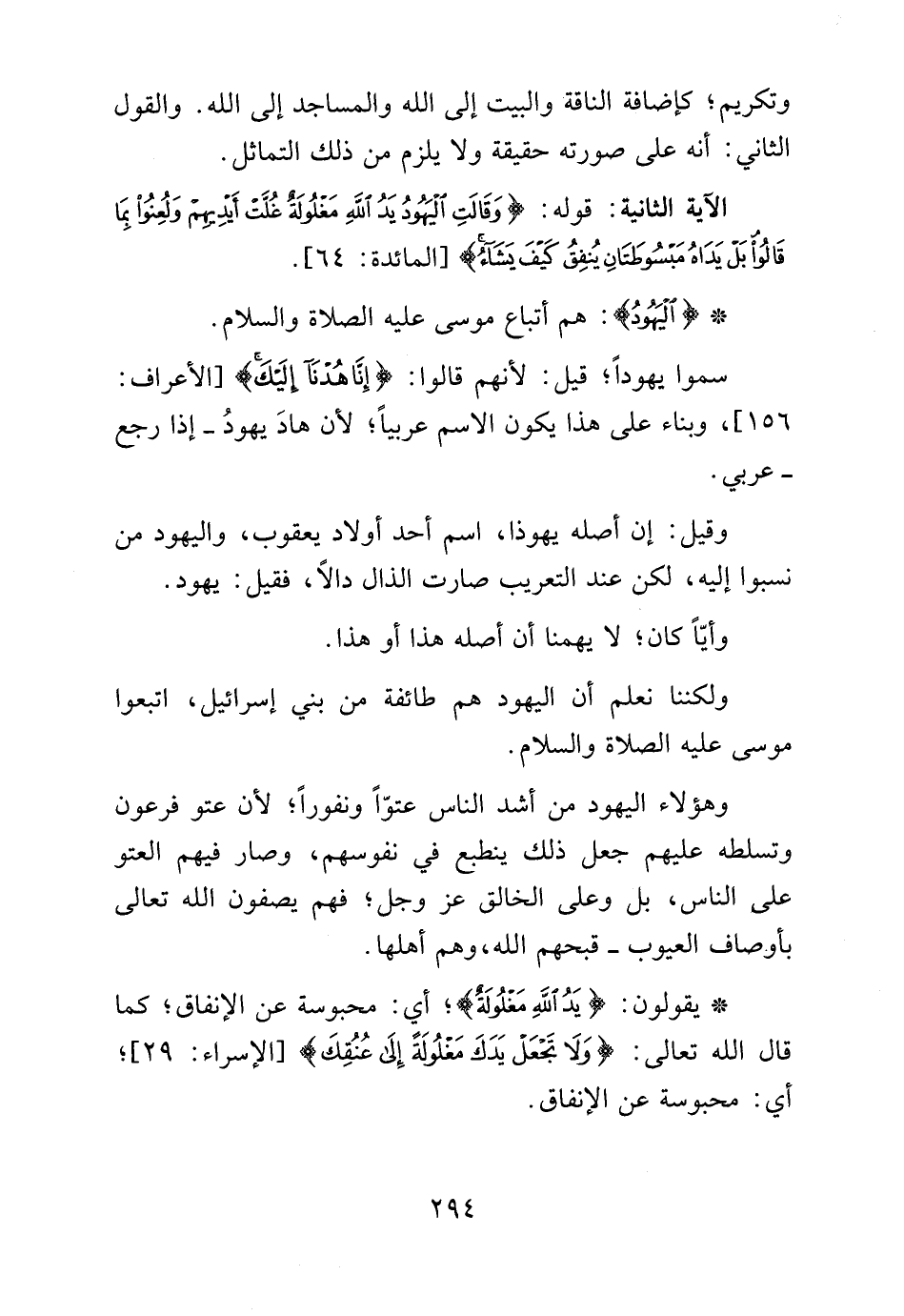 الآية الثانية: قوله: {وَقَالَتِ الْيَهُودُ يَدُ اللَّهِ مَغْلُولَةٌ غُلَّتْ أَيْدِيهِمْ وَلُعِنُوا بِمَا قَالُوا بَلْ يَدَاهُ مَبْسُوطَتَانِ يُنْفِقُ كَيْفَ يَشَاءُ} [المائدة: 64].
