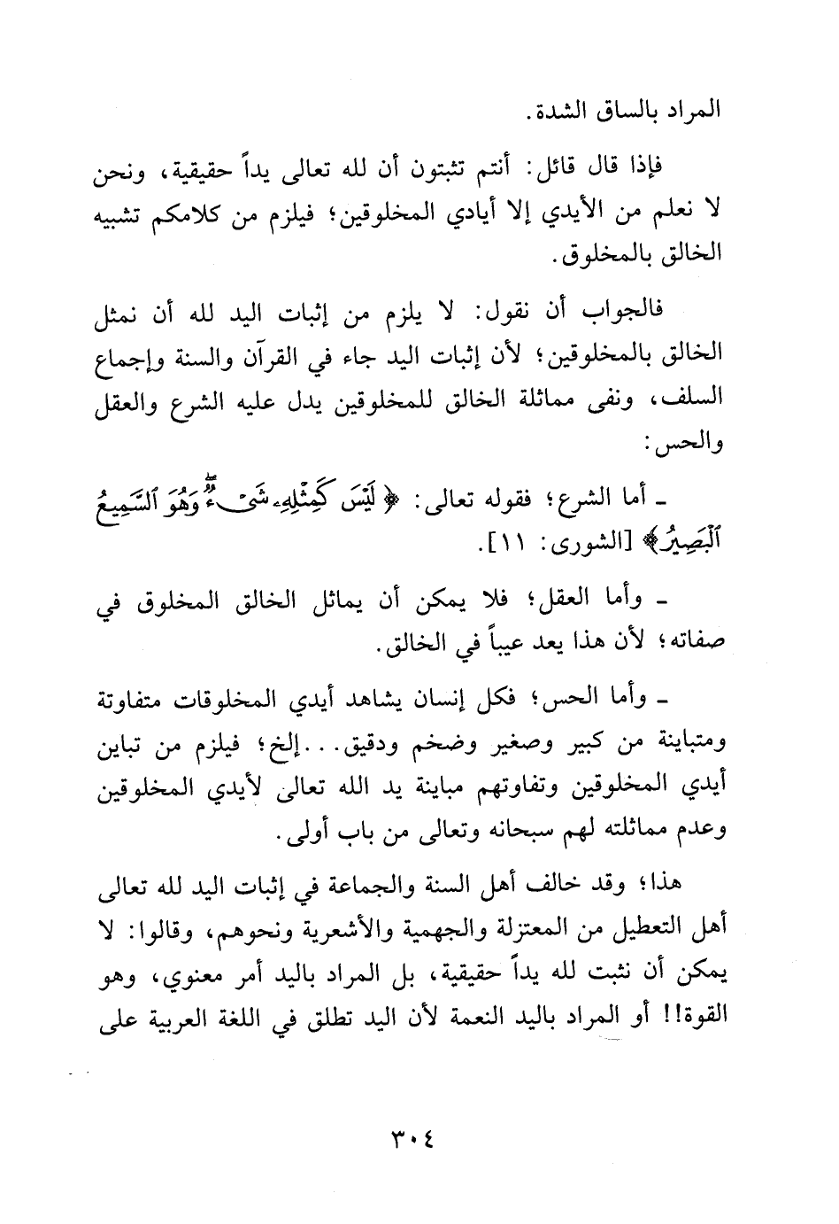 فإذا قال قائل: أنتم تثبتون أن لله تعالى يداً حقيقية، ونحن لا نعلم من الأيدي إلا أيادي المخلوقين، فيلزم من كلامكم تشبيه الخالق بالمخلوق.