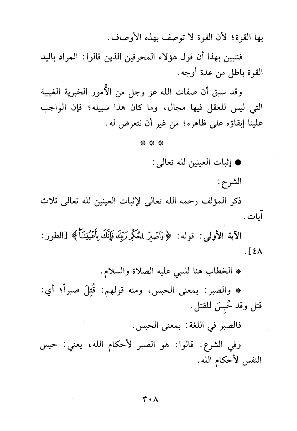 ذكر المؤلف رحمه الله تعالى لإثبات العينين لله تعالى ثلاث آيات.