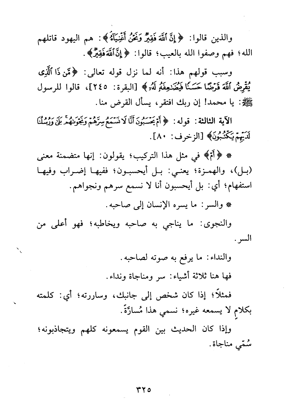 فمثلاً: إذا كان شخص إلى جانب: وساررته، أي: كلمته بكلام لا يسمعه غيره، نسمي هذا مسارة.