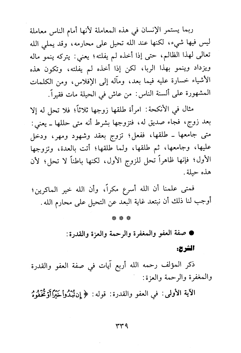 ذكر المؤلف رحمه الله أربع آيات في صفة العفو والقدرة والمغفرة والرحمة والعزة: