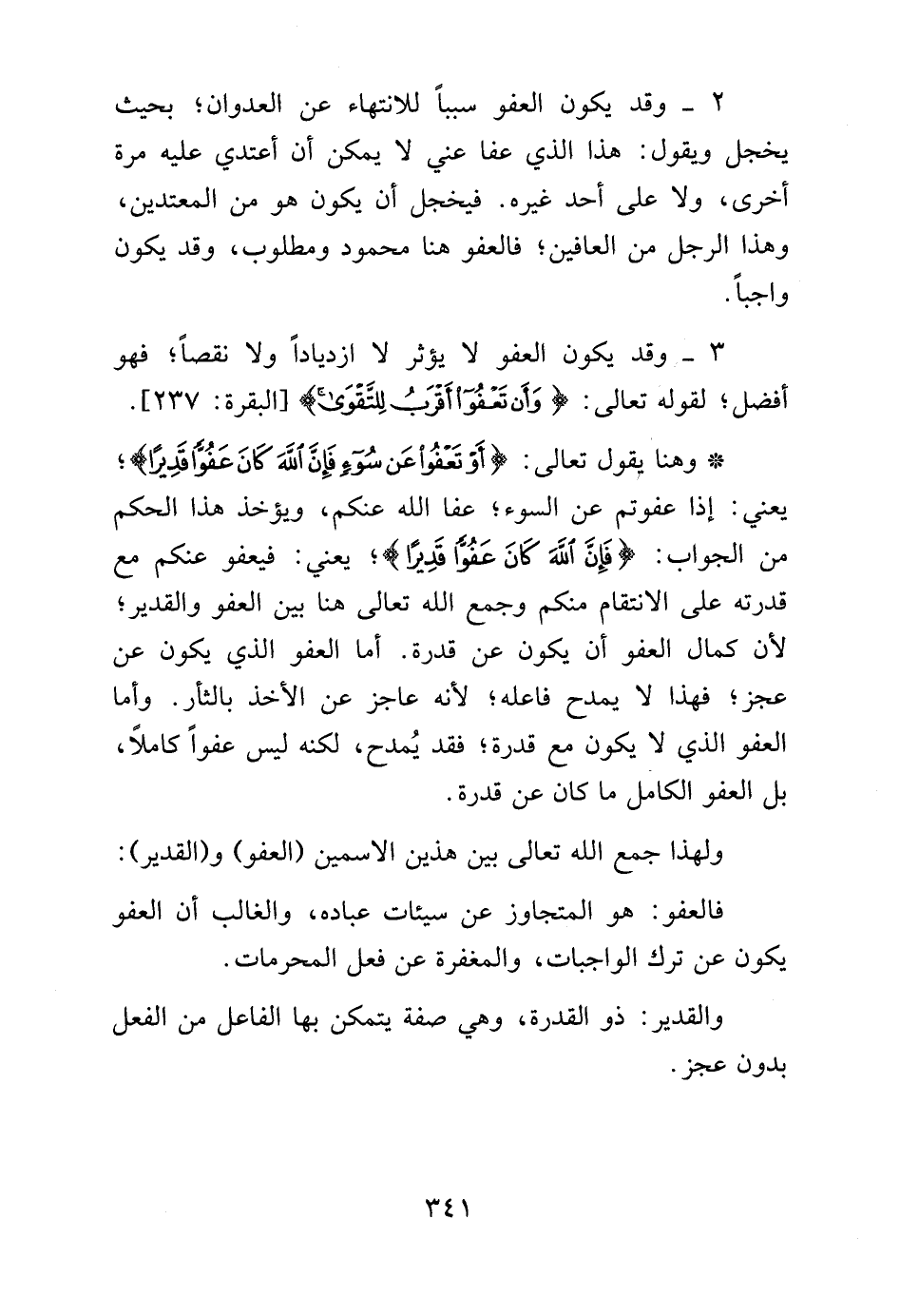 3 - وقد يكون العفو لا يؤثر ازدياداً ولا نقصاً؛ فهو أفضل لقوله تعالى: {وَأَنْ تَعْفُوا أَقْرَبُ لِلتَّقْوَى} [البقرة: 237].