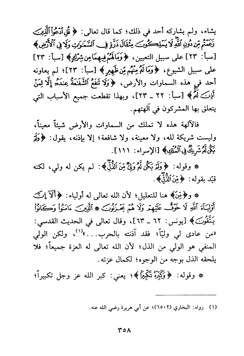 وقوله: {وَلَمْ يَكُنْ لَهُ وَلِيٌّ مِنَ الذُّلِّ}: لم يكن له ولي، لكن قيد بقوله: {مِنَ الذُّلِّ}.