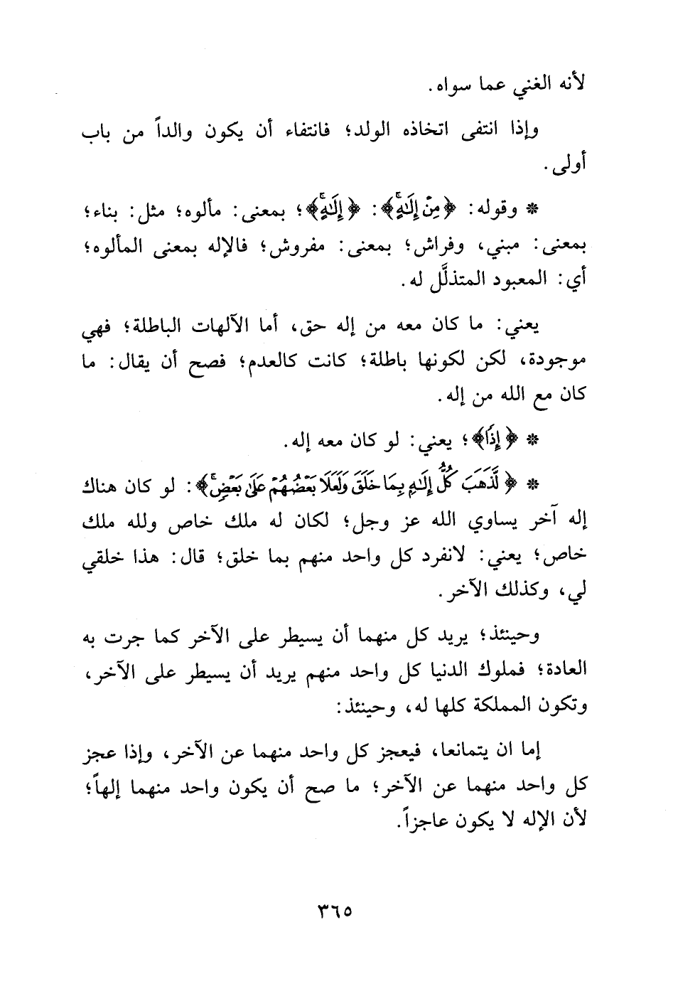 {لَذَهَبَ كُلُّ إِلَهٍ بِمَا خَلَقَ وَلَعَلا بَعْضُهُمْ عَلَى بَعْضٍ}: لو كان هناك إله آخر يساوي الله عز وجل, لكان له ملك خاص ولله ملك خاص، يعني: لا نفرد كل واحد منهم بما خلق، قال: هذا خلقي لي، وكذلك الآخر.