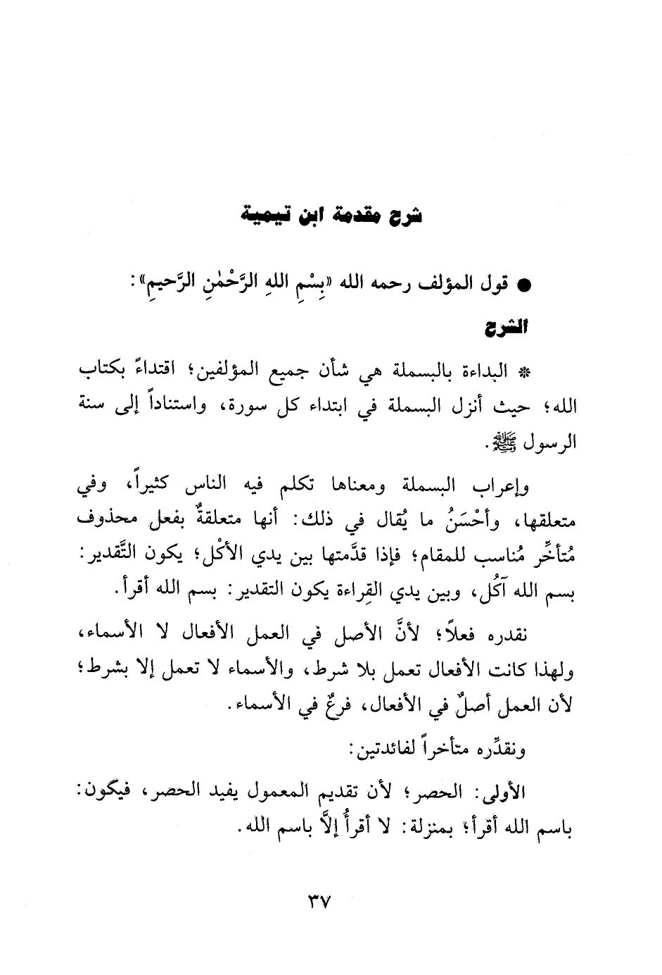 البداية بالبسملة هي شأن جميع المؤلفين، اقتداء بكتاب الله، حيث أنزل البسملة في ابتداء كل سورة واستناداً إلى سنة الرسول صلى الله عليه وسلم.