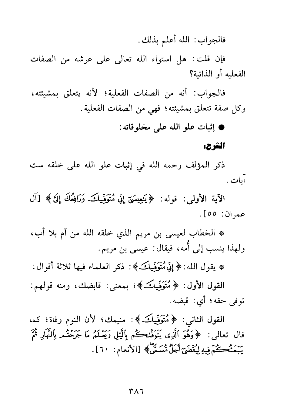 ذكر المؤلف رحمه الله في إثبات علو الله على خلقه ست آيات.