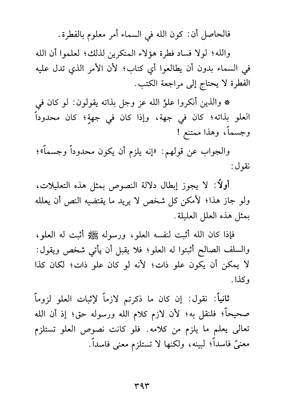 ثانياً: نقول: إن كان ما ذكرتم لازماً لإثبات العلو لزوماً صحيحاً؛ فلنقل به؛ لأن لازم كلام الله ورسوله حق؛ إذ أن الله تعالى يعلم ما يلزم من كلامه. فلو كانت نصوص العلو تستلزم معني فاسداً، لبينه، ولكنها لا تستلزم معني فاسداً.