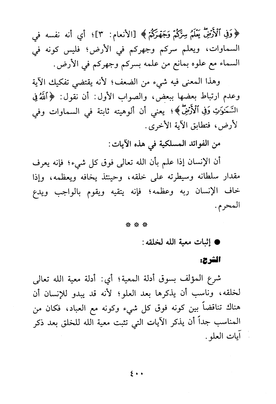 {وَفِي الأَرْضِ يَعْلَمُ سِرَّكُمْ وَجَهْرَكُمْ}، أي أنه نفسه في السماوات، ويعلم سركم وجهركم في الأرض، فليس كونه في السماء مع علوه بمانع من علمه بسركم وجهركم في الأرض.