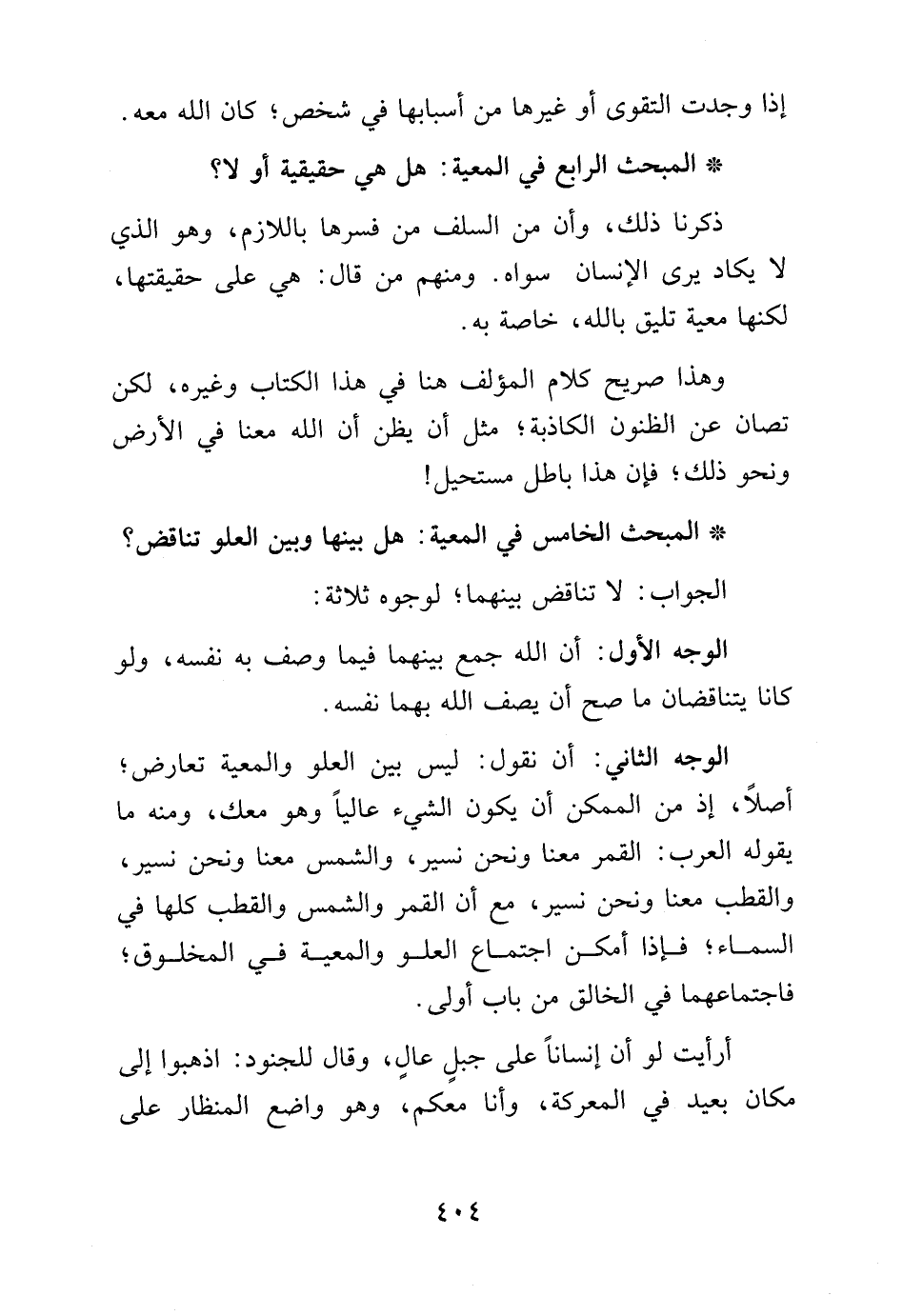 المبحث الخامس في المعية: هل بينها وبين العلو تناقض؟