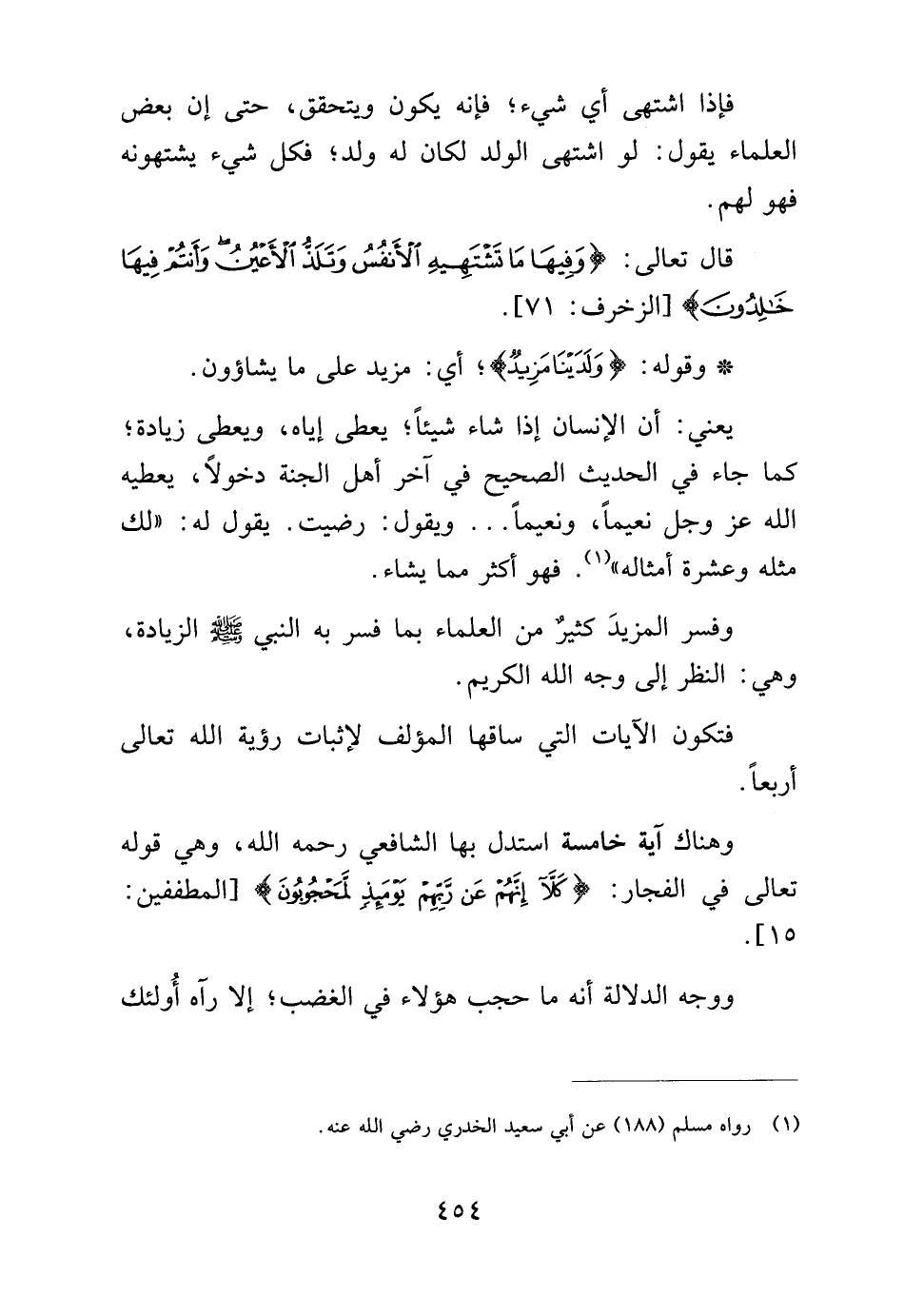وفسر المزيد كثير من العلماء بما فسر به النبي صلى الله عليه وسلم الزيادة, وهي: النظر إلى وجه الله الكريم.
