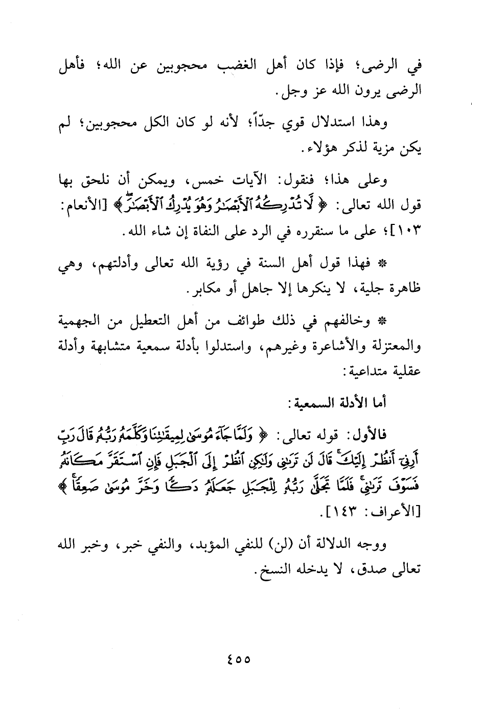 فهذا قول أهل السنة في رؤية الله تعالى وأدلتهم, وهي ظاهر جلية, لا ينكرها إلا جاهل أو مكابر.