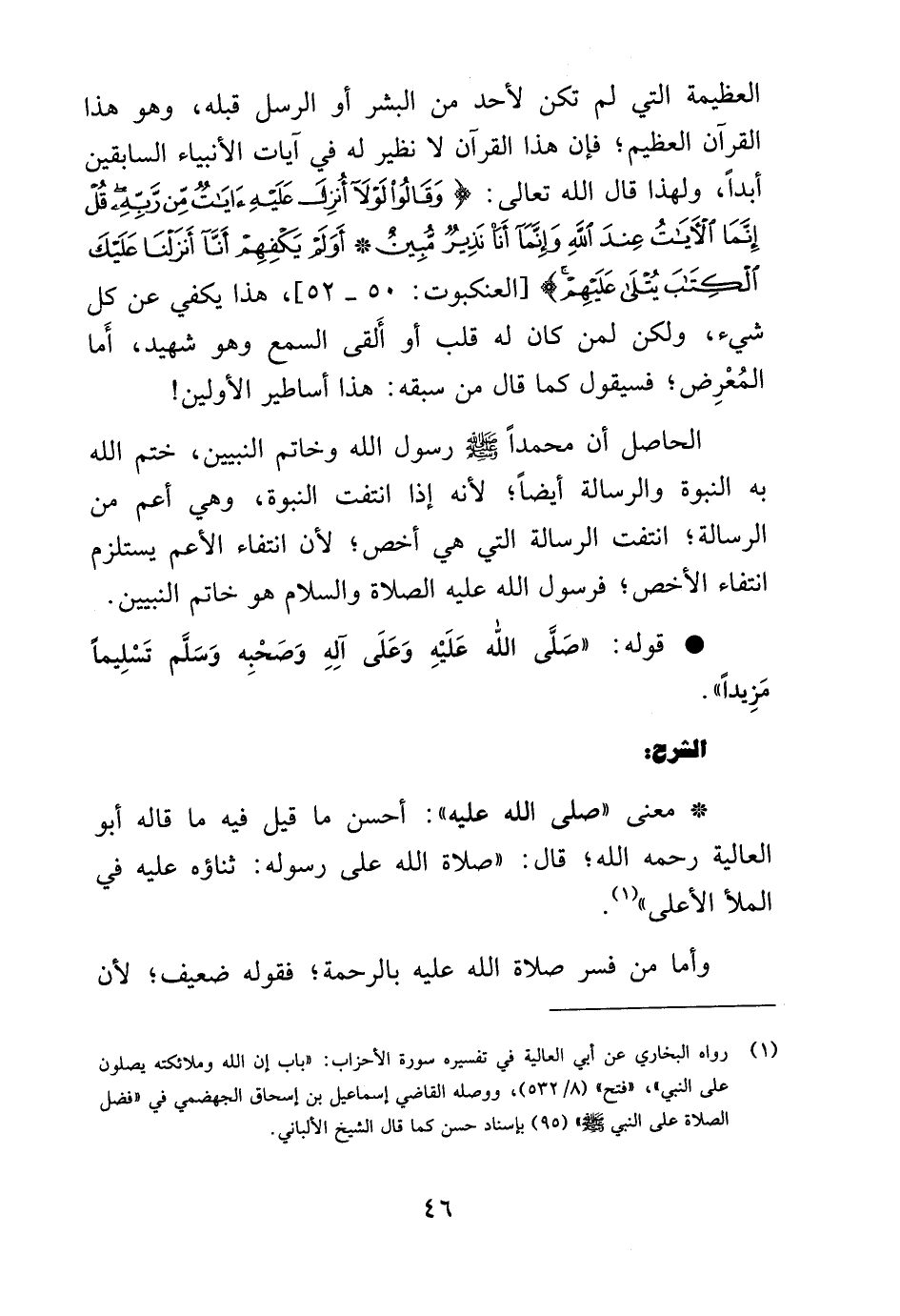 (¬1) رواه البخاري عن أبي العلية في تفسيره سورة الأحزاب: "باب إن الله وملائكته يصلون على النبي", "فتح" (8/ 532) , ووصله القاضي إسماعيل بن إسحاق الجهضمي في "فضل الصلاة على النبي صلى الله عليه وسلم" (95) بإسناد حسن كما قال الشيخ الألباني.