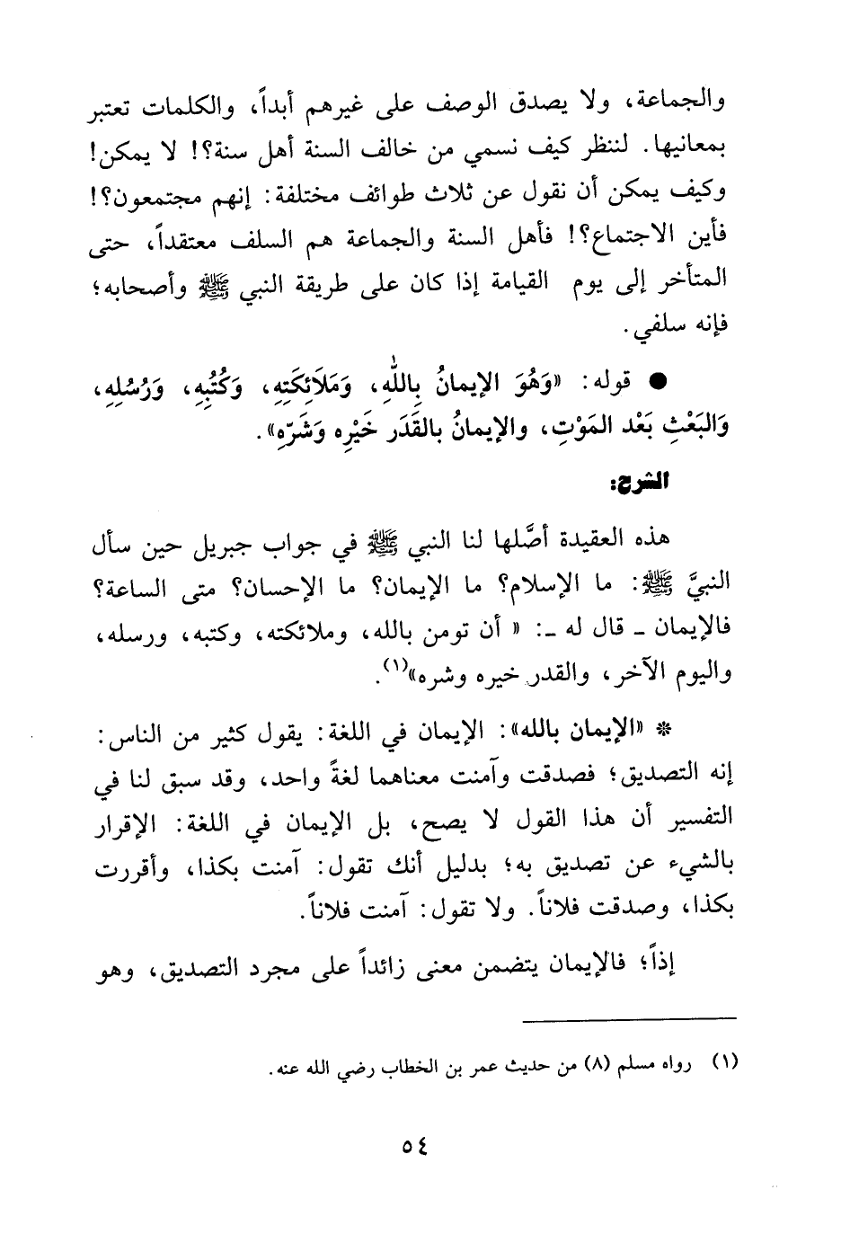 (¬1) رواه مسلم (8) من حديث عمر بن الخطاب رضي الله عنه في كتاب الإيمان/ باب بيان أركان الإيمان والإسلام.
