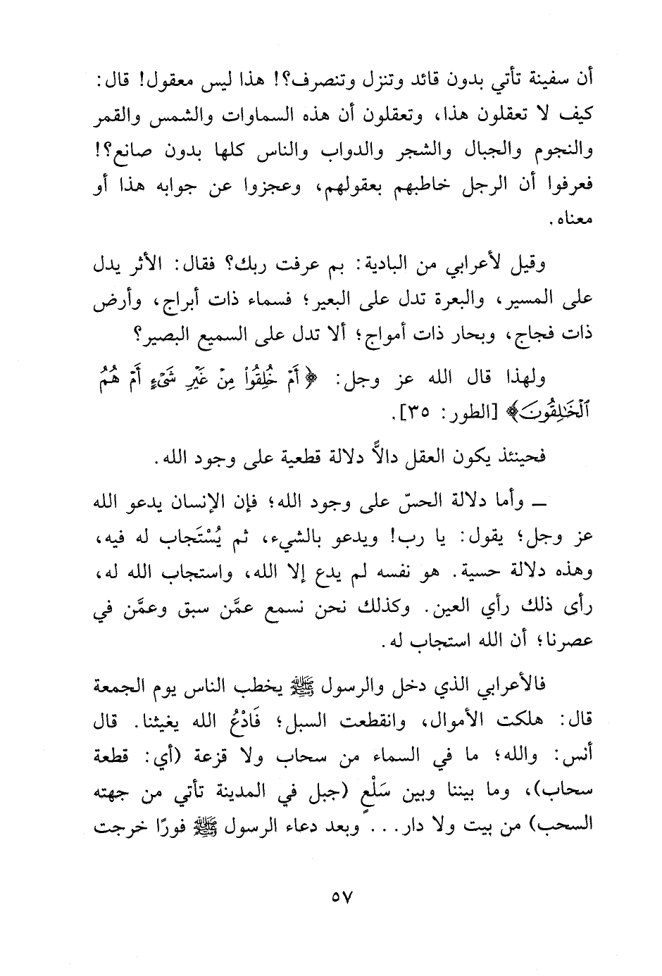 أن سفينة تأتي بدون قائد وتنزل وتنصرف؟! هذا ليس معقول! قال: كيف لا تعقلون هذا، وتعقلون أن هذه السماوات والشمس والقمر والنجوم والجبال والشجر والدواب والناس كلها بدون صانع؟ فعرفوا أن الرجل خاطبهم بعقولهم، وعجزوا عن جوابه هذا أو معناه.