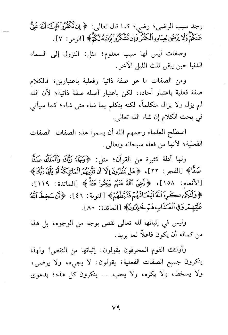 وأولئك القوم المحرفون يقولون: إثباتها من النقص! ولهذا ينكرون جميع الصفات الفعلية، يقولون: لا يجيء ولا يرضى، ولا يسخط ولا يكره ولا يحب .. ينكرون كل هذه، بدعوى