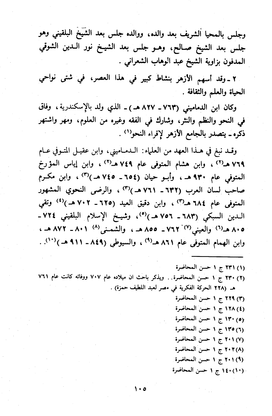 2 - وقد أسهم الأزهر بنشاط كبير في هذا العصر، في شتى نواحي الحياة والعلم والثقافة.