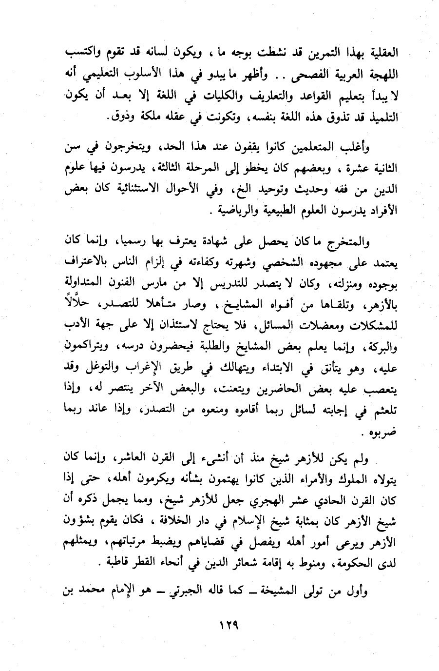 وأغلب المتعلمين كانوا يقفون عند هذا الحد، ويتخرجون في سن الثانية عشرة، وبعضهم كان يخطو إلى المرحلة الثالثة، يدرسون فيها علوم الدين من فقه وحديث وتوحيد الخ، وفي الأحوال الاستثنائية كان بعض الأفراد يدرسون العلوم الطبيعية والرياضية.