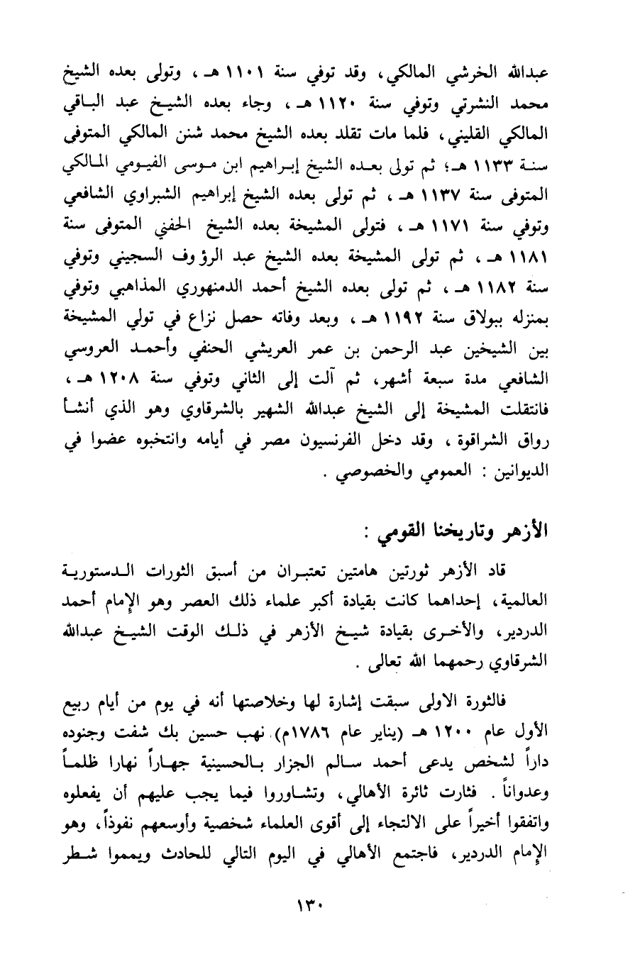 قاد الأزهر ثورتين هامتين تعتبران من أسبق الثورات الدستورية العالمية، إحداهما كانت بقيادة أكبر علماء ذلك العصر وهو الإمام أحمد الدردير، والأخرى بقيادة شيخ الأزهر في ذلك الوقت الشيخ عبد اللّه الشرقاوي رحمهما اللّه تعالى.
